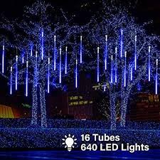 Amazon Com Maoyue Meteor Shower Lights 16 Tubes 640 Led Icicle Lights Outdoor Christmas Icicle Lights Outdoor Blue Christmas Lights Indoor Christmas Lights