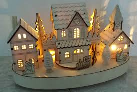 Putz Style Light Up Winter Christmas Village Three Houses With Lights Display Christmas Village Light Display Winter Christmas