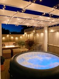 Our Actual Backyard Pergola Lights Over Hottub Cozy Hot Tub Backyard Pergola Backyard Pergola