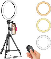 Amazon Com 10 Led Ring Light With Tripod Stand And Phone Holder For Selfie Live Streaming Youtube Video Dimmab In 2020 Led Ring Light Led Ring Ring Light Tripod