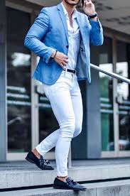 Light Blue White White Pants Men Mens Outfits Blue Suit Men