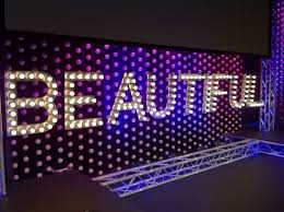 Mdf Letters Front Surface Covered With Ac Ducting Aluminum Tape To Help Reflect The Lights Off The Letters Ordina Church Stage Design Stage Design Church Stage