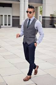 Men S Charcoal Waistcoat Light Blue Dress Shirt Navy Chinos Brown Leather Loafers Casual Wear For Men Light Blue Dress Shirt Blue Shirt Dress