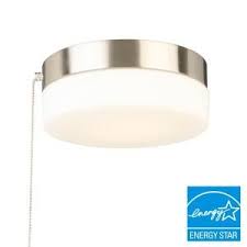 Hampton Bay 11 In 60 Watt Equivalent Brushed Nickel Integrated Led Flush Mount With Pull Chain And Glass Shade Iso8011l The Home Depot Pull Chain Light Fixture Ceiling Lights Ceiling Light Fixtures