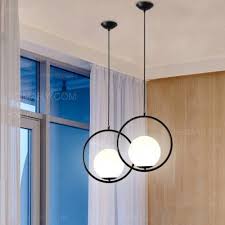 Contemporary Minimalist Metal Ring Globe Glass Shade Single Light Gold Black Pendant Light Black Pendant Light Single Pendant Lighting Pendant Light